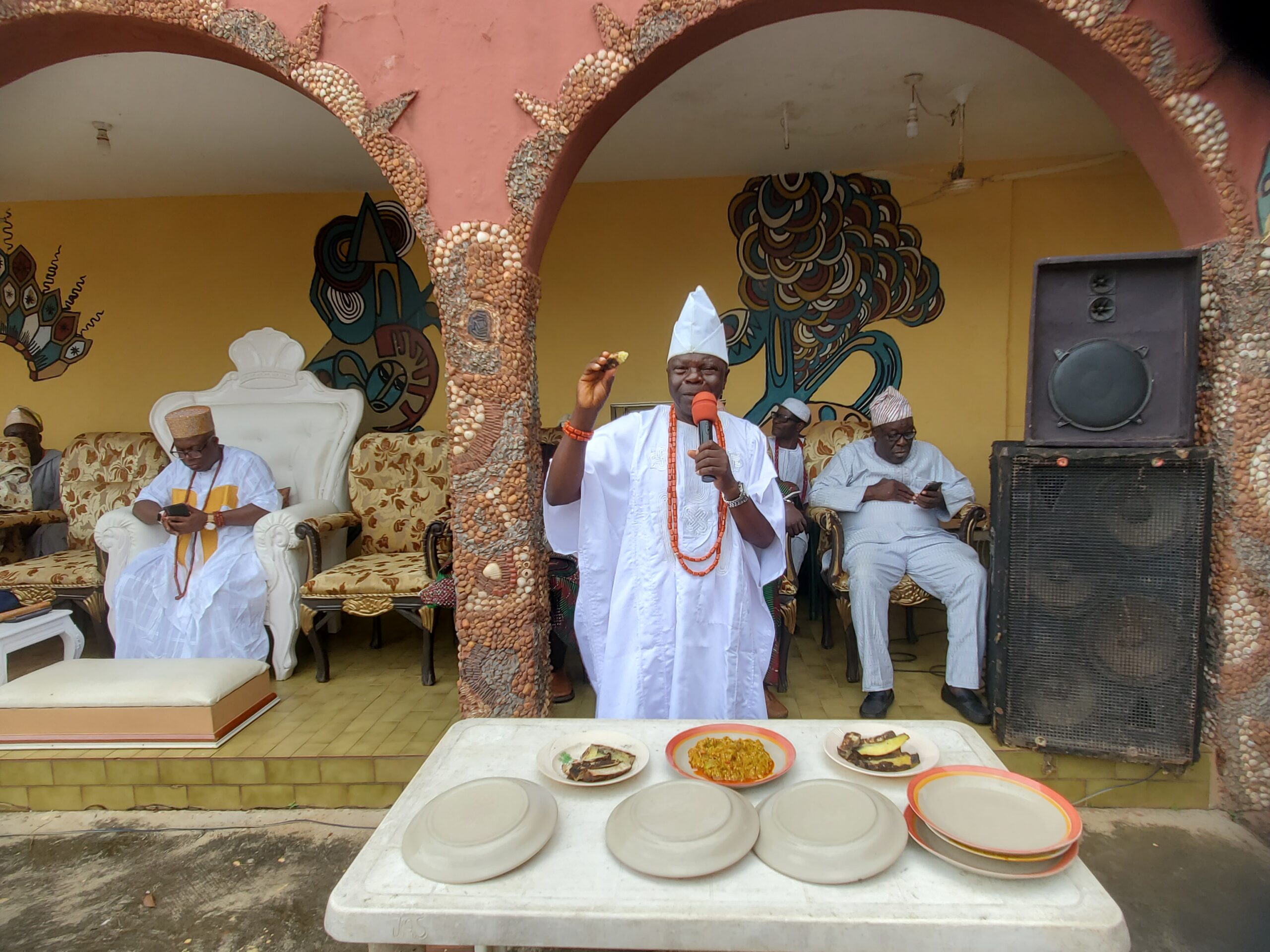 The Iloko-Ijesa monarch, Oba Olusayo Akeem Ogungbangbe, got up, came over to the high table, and replicated what his chiefs had just done by dipping a piece of roasted yam inside Igba soup.