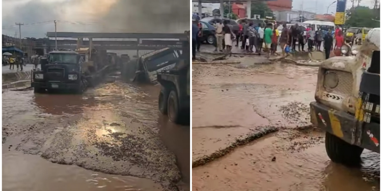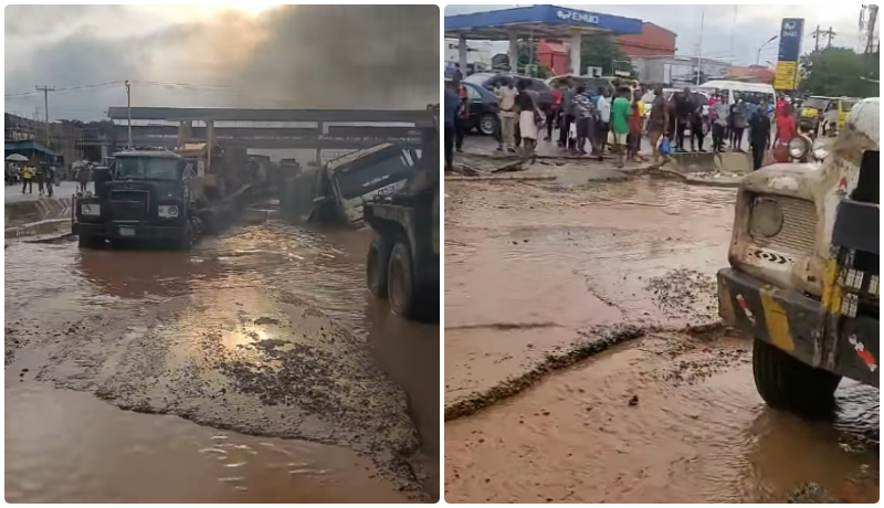 Explaining he narrated that ” on Saturday, after a heavy down pour, a trailer laden with bags of cement fell inside the flood at the bad spot of the road, destroying over a hundred bags and the trailer at the same time.”