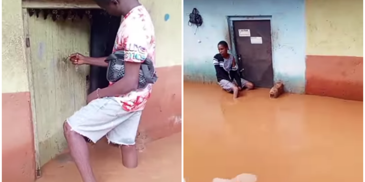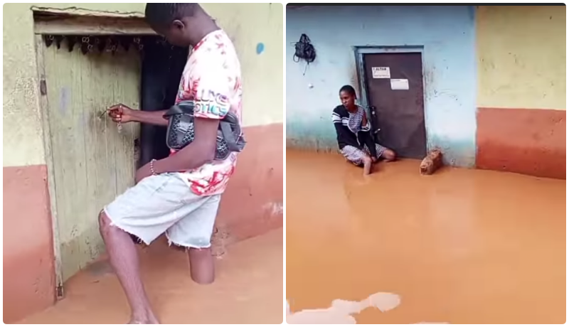 “I parked into this apartment two years ago. As a matter of fact, there was nothing like flood threat in this area when I parked in. but as you can see today, our compound has been submerged by flood. My room was full of water when I came from shop last night.”