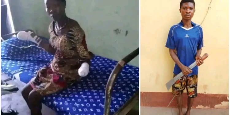 It was indeed another day of gory tales in Nsukka, Enugu state as a young man has allegedly cut off his wife’s wrist with cutlass following a heated argument over a handset.
