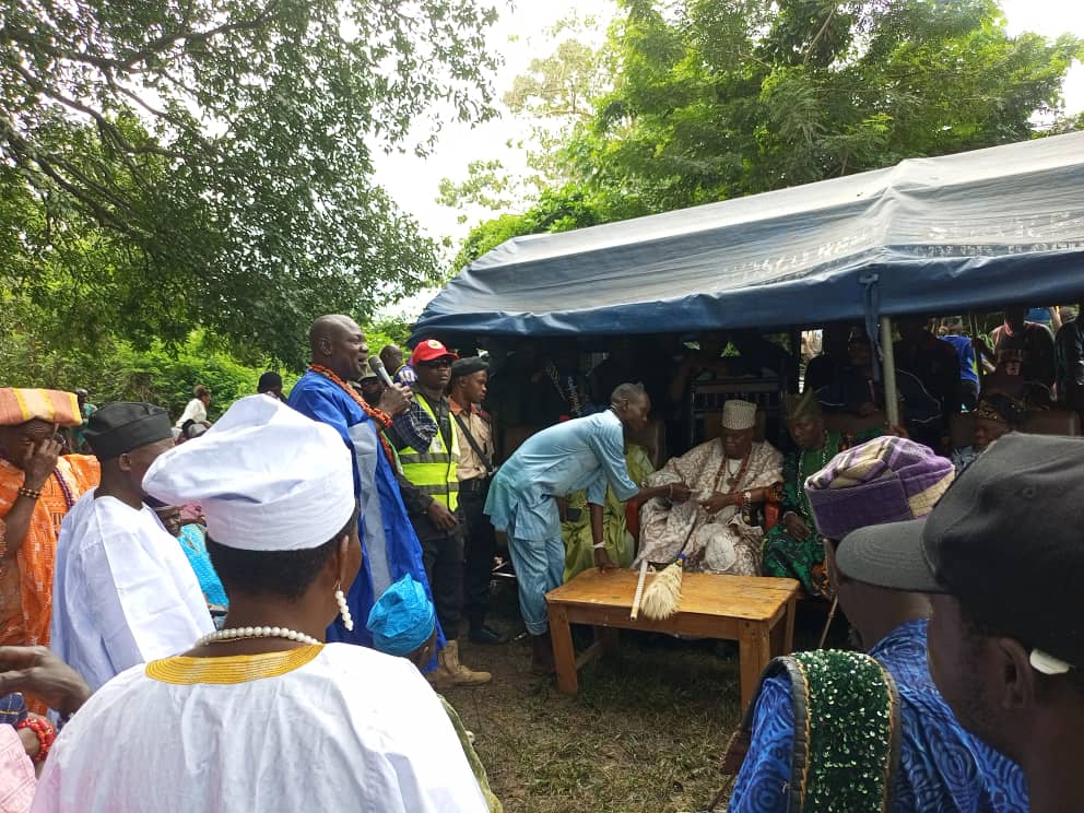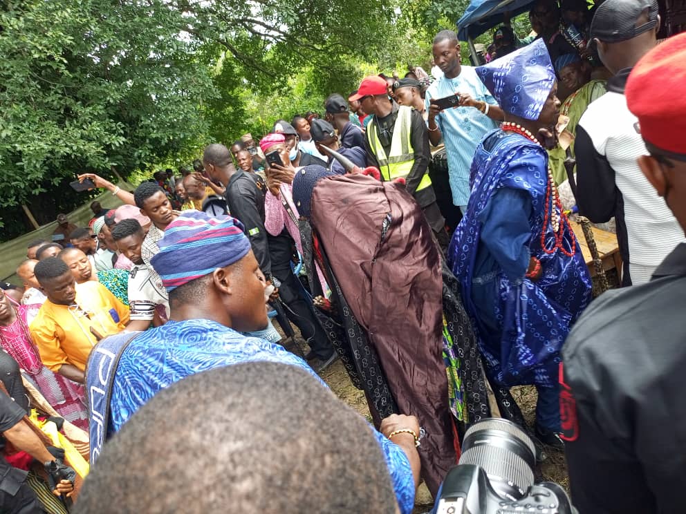 He was offered a plastic chair a few meters away from the river. He sat on the plastic chair, held a particular sacrificial item, and prayed for the town and every indigene of Ilobu. The sacrificial item was given to one of his high chiefs to go and drop it inside the flowing Erinle River.