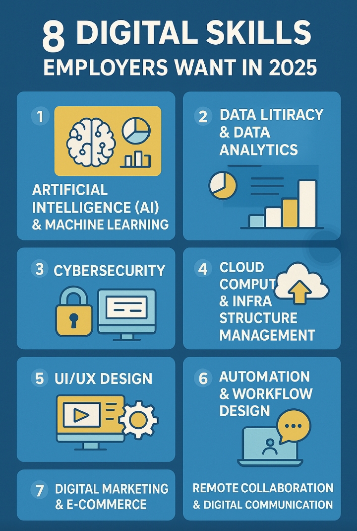 This year has proven one thing: employers will chase talent with practical digital skills, not certificates or LinkedIn buzzwords. AI, analytics, cybersecurity, cloud, UI/UX, automation, digital marketing, and remote collaboration aren’t trends — they’re essentials.