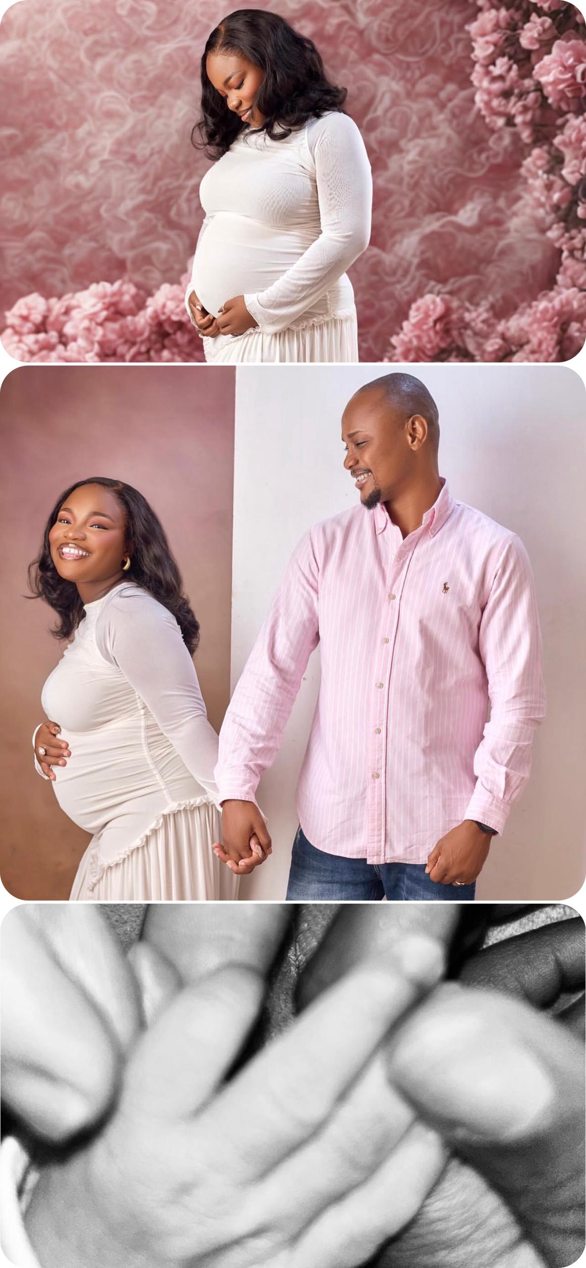 Announcing the arrival of their child on instagram, Ayomiku shared photos of herself cradling her baby bump, another one with her husband, and a third picture showing their fingers, including their newborn. The post was captioned:
