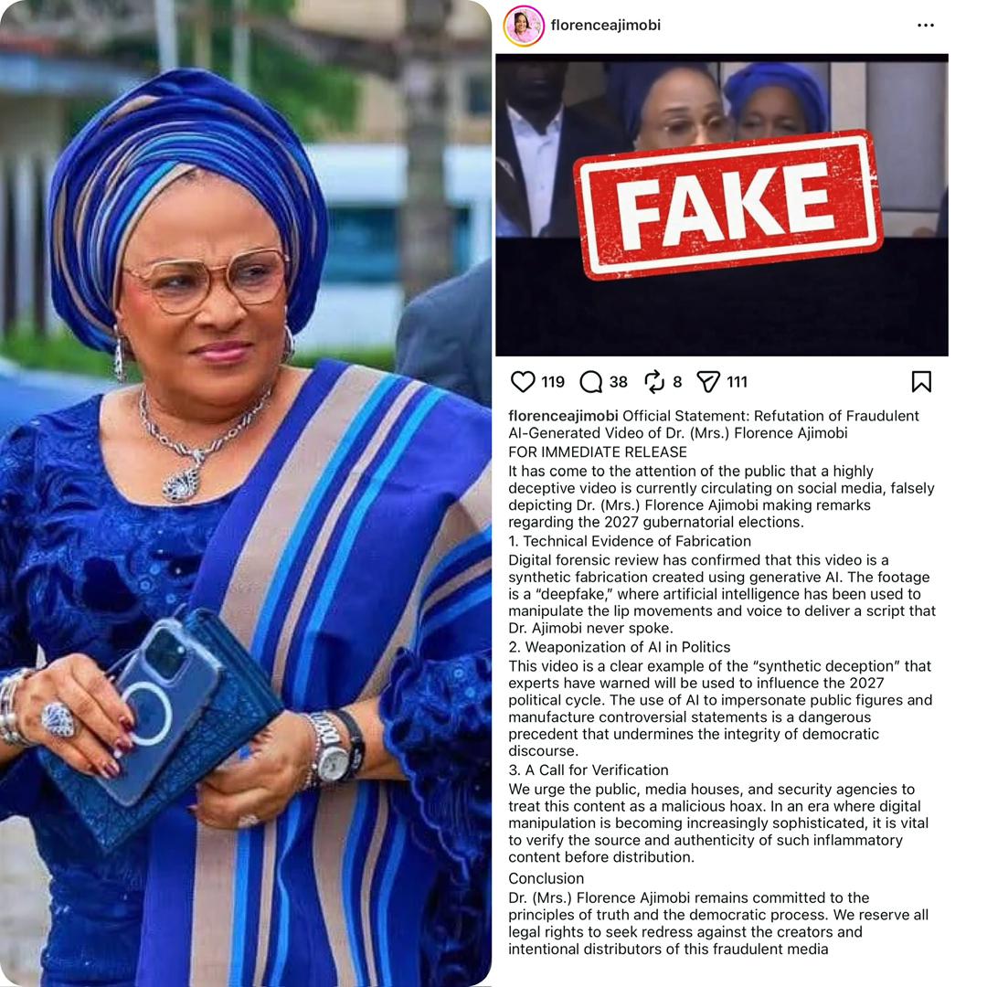 Ajimobi and her team responded with a formal statement, calling the video a “deepfake”.