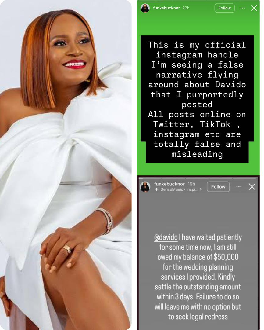 “@davido I have waited patiently for some time now, I am still owed my balance of $50,000 for the wedding planning services I provided. Kindly settle the outstanding amount within 3 days. Failure to do so will leave me with no option but to seek legal redress.”