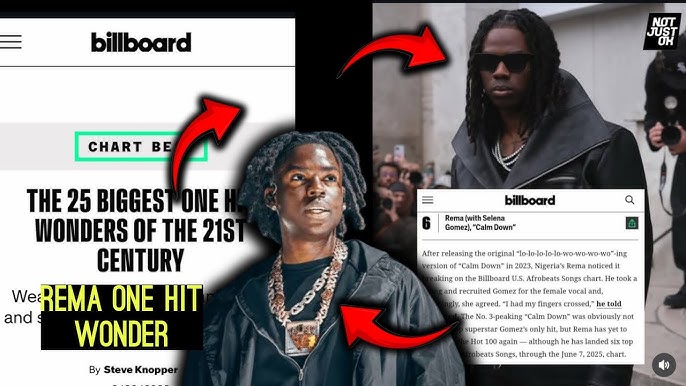 Billboard’s classification of Rema as a one-hit wonder highlights the tension between traditional U.S.-centric metrics and the realities of global music consumption in the 21st century. While Calm Down qualifies as his singular U.S. Hot 100 top forty hit at the time of the list, Rema’s broader impact demonstrates that musical success can no longer be measured solely through American radio play or chart dominance. His international tours, viral streaming hits, collaborations with global artists, and presence on worldwide playlists illustrate a career that is rich, multi-faceted, and far from fleeting.
