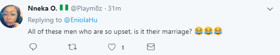 After she shared her story, some women who did the same thing came to share theirs. A few Nigerian men applauded her for challenging the status quo. But the majority of Nigerian men were angry and called her out. Some even insulted her husband for supporting her.