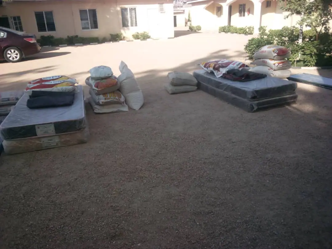 Dr. Jili said that the materials included six bags of maize, six bags of rice, six pieces of blankets, three bags of salt, six bags of cement. Other items according to him include six pillows, six bundles of roofing sheets, and six mattresses.