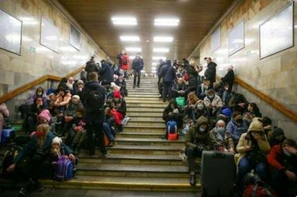 The UN on Friday said that at least 100,000 people have likely been displaced by the violence in the Ukraine crisis and terrified families have been forced to seek shelter underground in the capital.