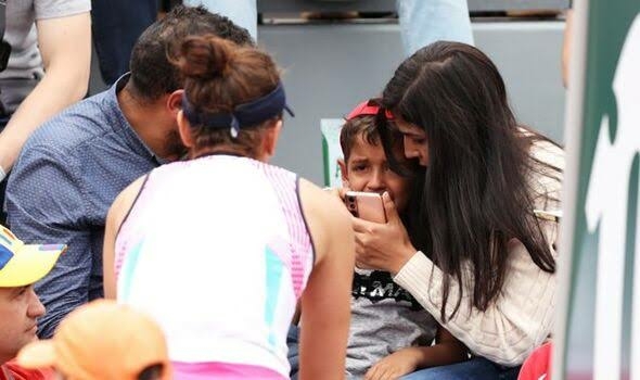The match was suspended as the young boy, who was sitting near the umpire’s chair, was left in tears and being comforted by his parents.