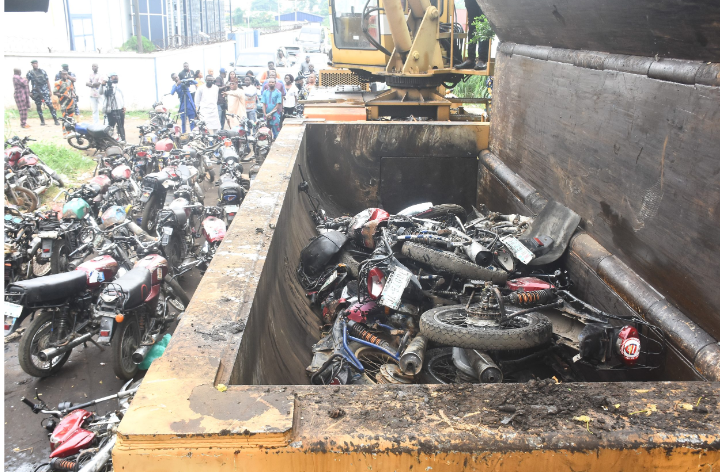 The Commissioner for Information and Strategy, Mr Gbenga Omotoso, said that in the first quarter of 2022, about 5,000 Okada had been crushed and there were about 2,000 to be crushed today.