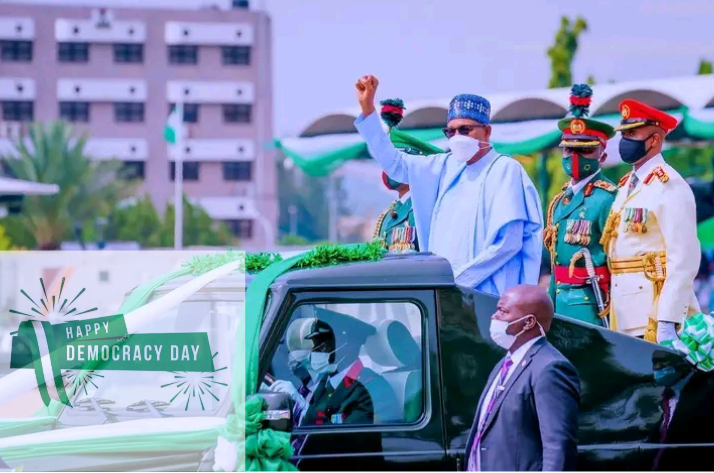 President Muhammadu Buhari received a rousing welcome from students, guests and dignitaries on Monday at the Eagle Square, Abuja, venue of the June 12 Democracy Day celebrations.