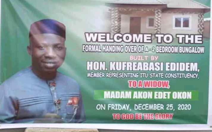 A man, Mr Emmanuel Jacobs, has donated one bedroom apartment to a widow, Mrs Iquo Udoaka, who hailed from Ikot Ekpe in Mkpat Enin Local Government Area of the state.