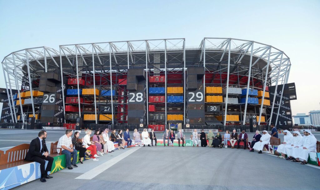 In conjunction with World Mental Health Day, a selection of the first benches was presented on Tuesday at 974 Stadium, in Doha, one of the venues for the 2022 FIFA World Cup.