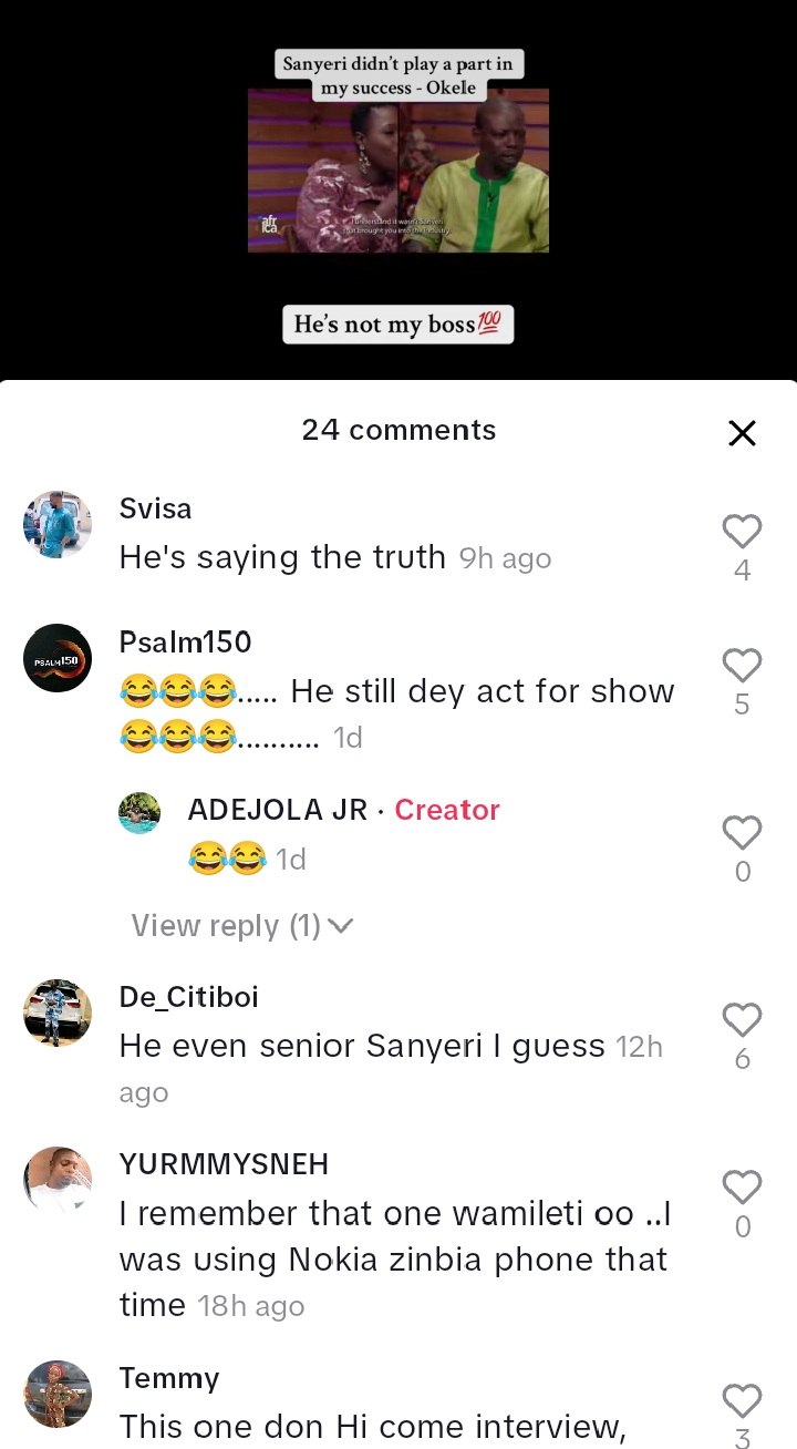 In a recently resurfaced interview now going viral on TikTok, Okele denied the narrative, saying he began acting long before Sanyeri entered the spotlight.