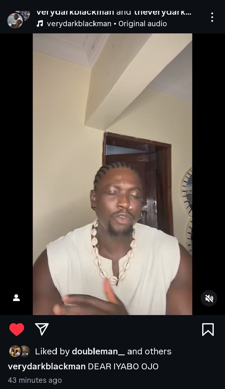 In a new video shared via his Instagram page, Verydarkman reacted to Iyabo Ojo’s emotionally charged statement, where she disclosed how her activism for Mohbad led to severe threats against her life, attacks on her business, and even a disturbing incident where her name was seen written inside a coffin.