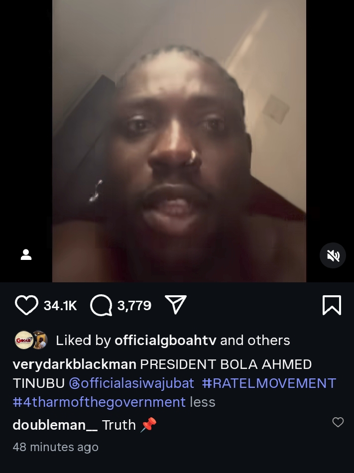 In a video posted on Instagram, Verydarkman did not hold back as he addressed the deep frustrations many Nigerians are currently battling under the Tinubu-led administration.