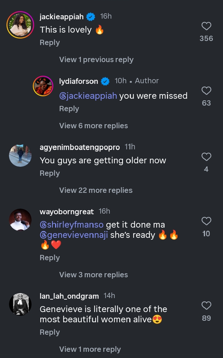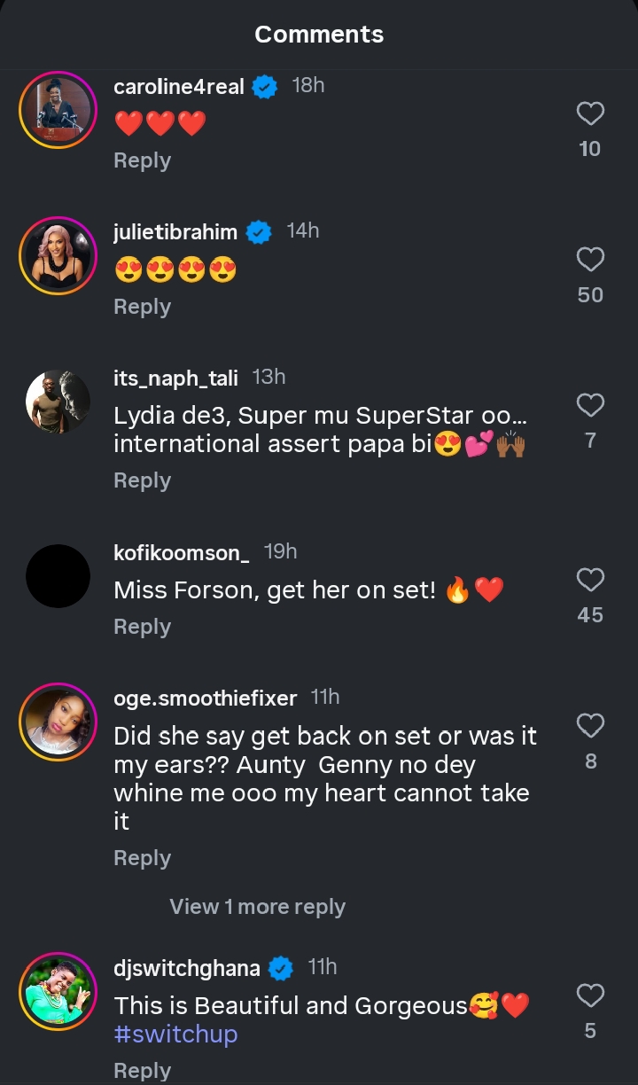 Celebrated Ghanaian stars Jackie Appiah, Juliet Ibrahim, and several others didn’t hesitate to express their joy in the comment section.