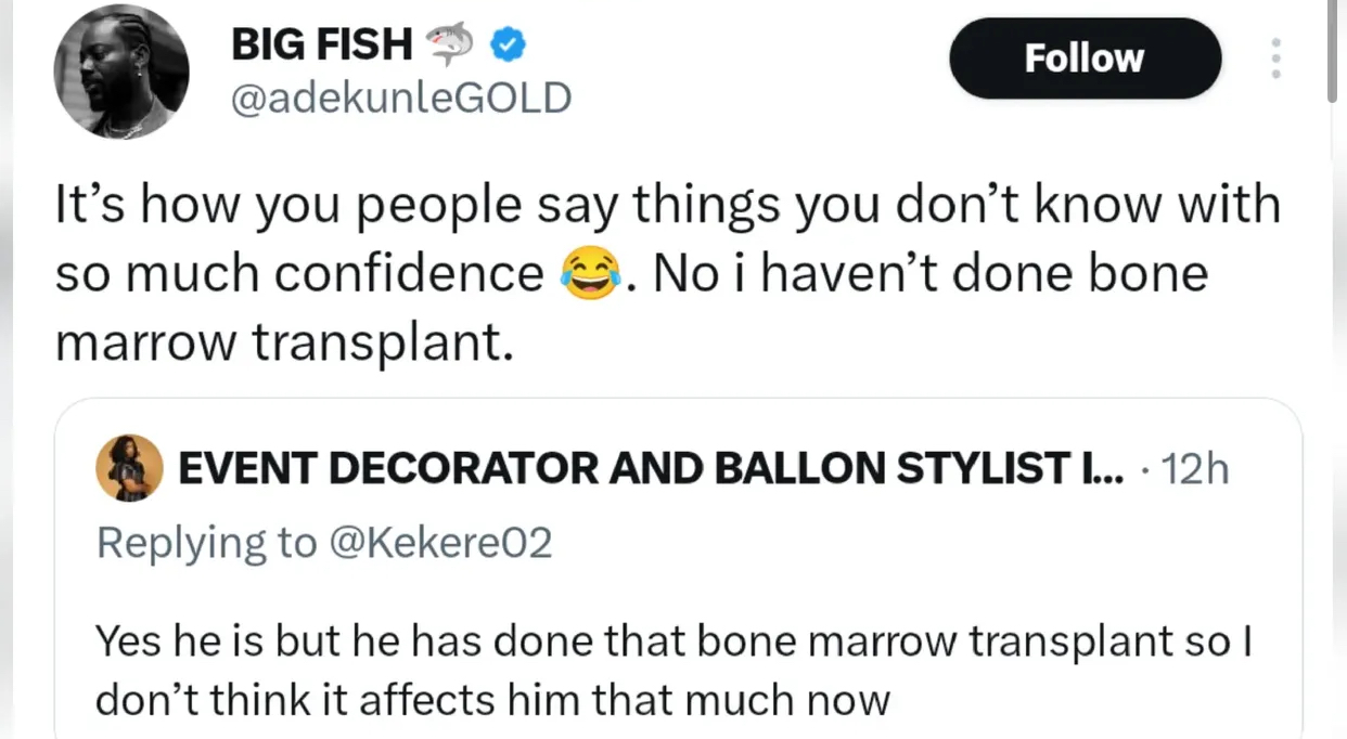 “It’s how you people say things you don’t know with so much confidence 😂. No I haven’t done bone marrow transplant.”
