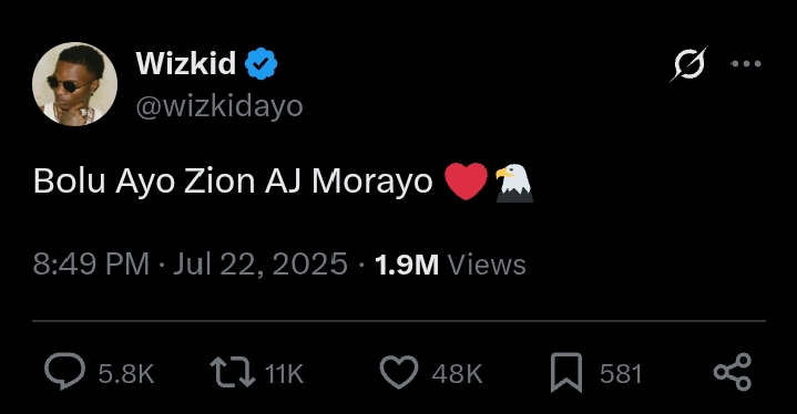 Just hours after Davido’s cryptic diss surfaced on X (formerly Twitter), Wizkid — real name Ayodeji Balogun — broke his silence with a calm, non-confrontational post that appeared to deflect the drama altogether.