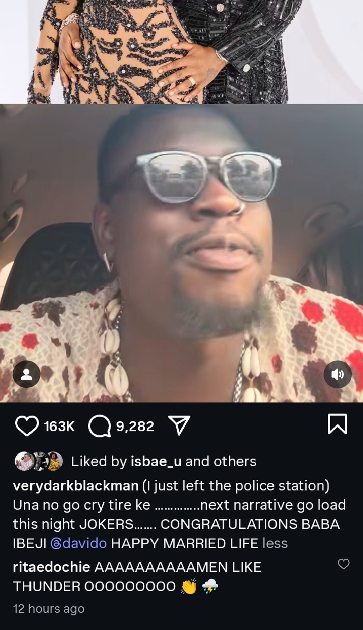 Prior to the wedding, speculation of tension between Davido and VeryDarkMan surfaced when VDM revealed that since his activism efforts began, Davido hadn’t supported him financially as some had assumed or speculated, refuted rumors that Davido sponsored his flight or hotel during their viral meeting.