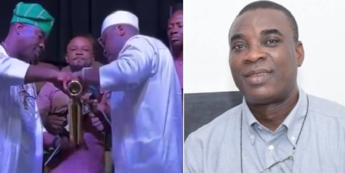 Legendary Fuji musician, King Wasiu Ayinde Marshal, popularly known as K1 De Ultimate, has once again sparked curiosity among fans after a recent performance video showed him pausing mid-show to refill his iconic flask.