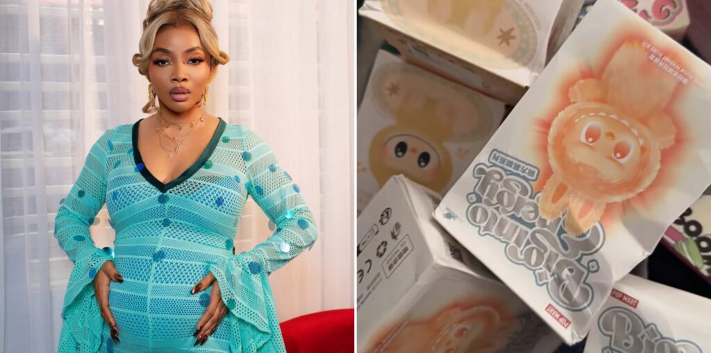 Media personality Toke Makinwa is already spoiling her baby girl with gifts, even before she arrives. The OAP shared a short clip on Snapchat showing packs of the trending stuffed toy, Labubu, which she bought specially for her daughter.