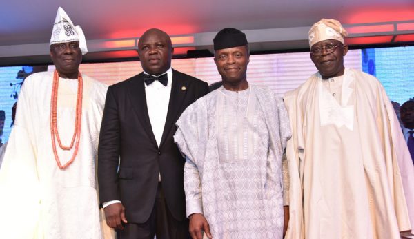As the procession reached the front table, the Oba exchanged a warm greeting with then-Governor Akinwunmi Ambode, who rose in respect. A few seats away sat Yemi Osibanjo, the vice president then. The Oba nodded. For a moment, Nigeria’s cultural continuum was perfectly aligned: monarchy, governance, and intellect — sharing a table beneath glass chandeliers and ancestral gaze.