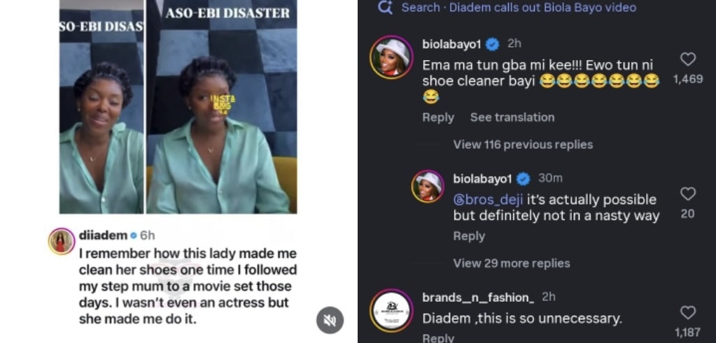 Diiadem’s post appeared under Biola’s playful reel about aso-ebi costs. What seemed like a joke for followers turned into something more serious. Her comment quickly drew thousands of reactions, including Biola Bayo’s own.