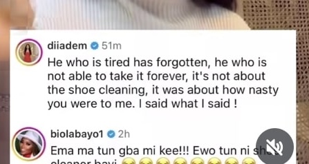 The light-hearted tone of Biola Bayo’s reply did little to ease the tension. Within hours, screenshots of Diiadem’s comment were everywhere on Instagram blogs, gossip pages, and comment sections began buzzing with divided opinions. Some users praised her for courage, calling it a bold move to speak about an old wound. Others dismissed it as a bid for attention or a misunderstanding of a long-forgotten moment.