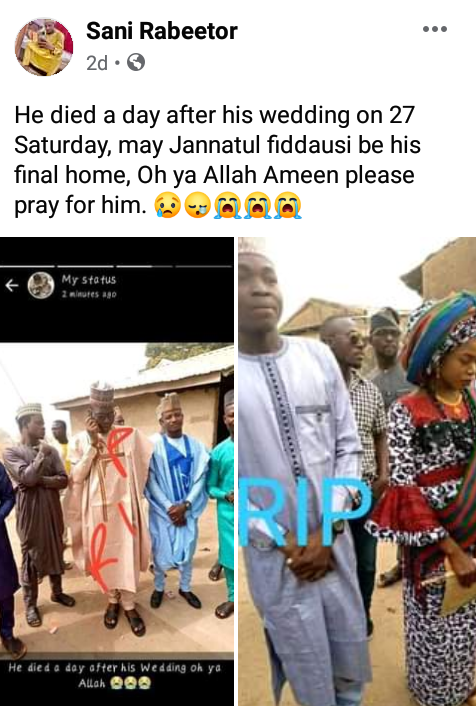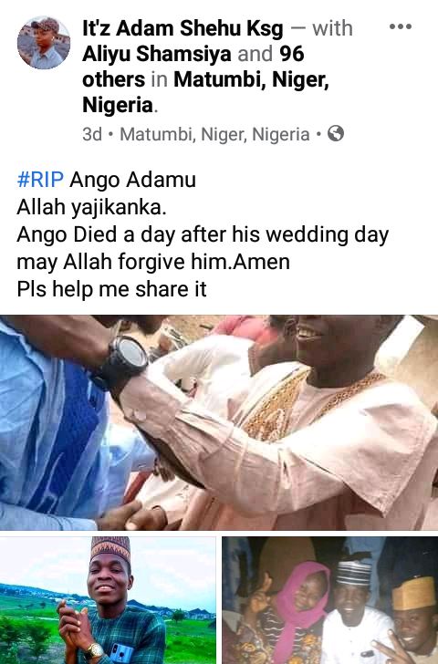 A young Nigerian man identified as Ango Adamu has died a day after his wedding.
