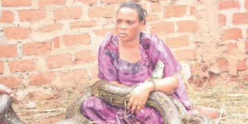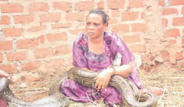A Zimbabwean woman identified as Gogo Nenohwe has left residents of Nenohwe Village in shock after she was caught at her friend’s house breastfeeding a giant snake.