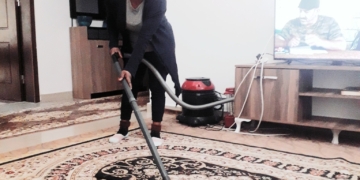 A proud Nigerian woman, identified as Owoeye Sandra Omowunmi who apparently enjoys her job as a cleaner in Libya, has shared photos of herself on duty.