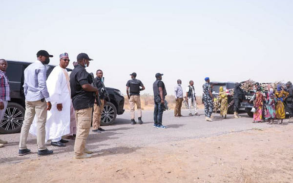 PHOTOS: Gov Zulum Stops Motorcade Along Boko Haram Infested Area To Lift Girls Gathering Firewood