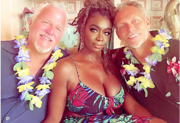 A woman has caused stir online after she share a photo of herself posing with the men in her live.