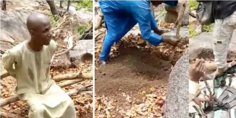 In the now viral video, the suspected kidnapper was seen removing some weapons he buried on the ground after he was arrested.