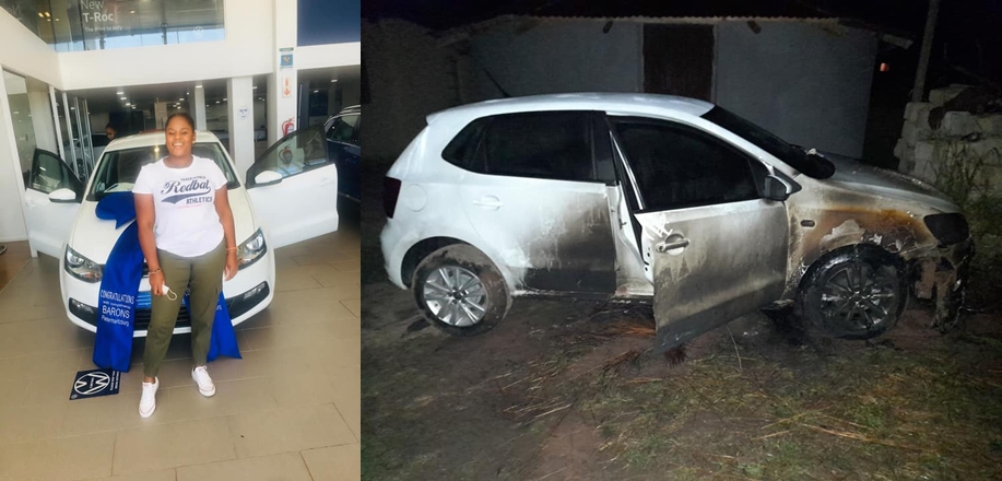A South African lady, Pearl Mthombeni has been left in devastation after her brand new car was set on fire few weeks after she flaunted the vehicle on Facebook.