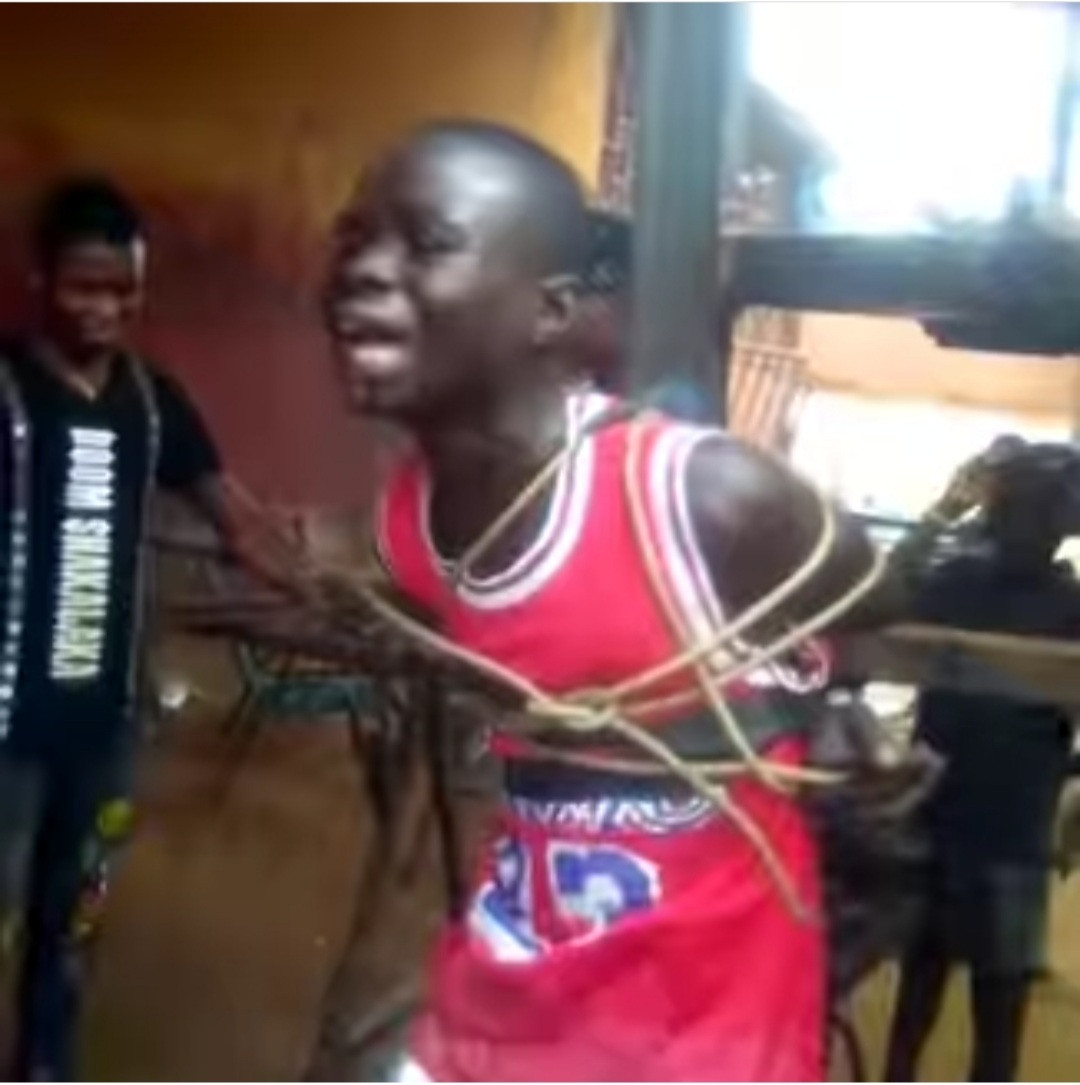 A disturbing video has gone viral showing the moment a boy was brutally tortured while he foamed in the mouth and begged for mercy.