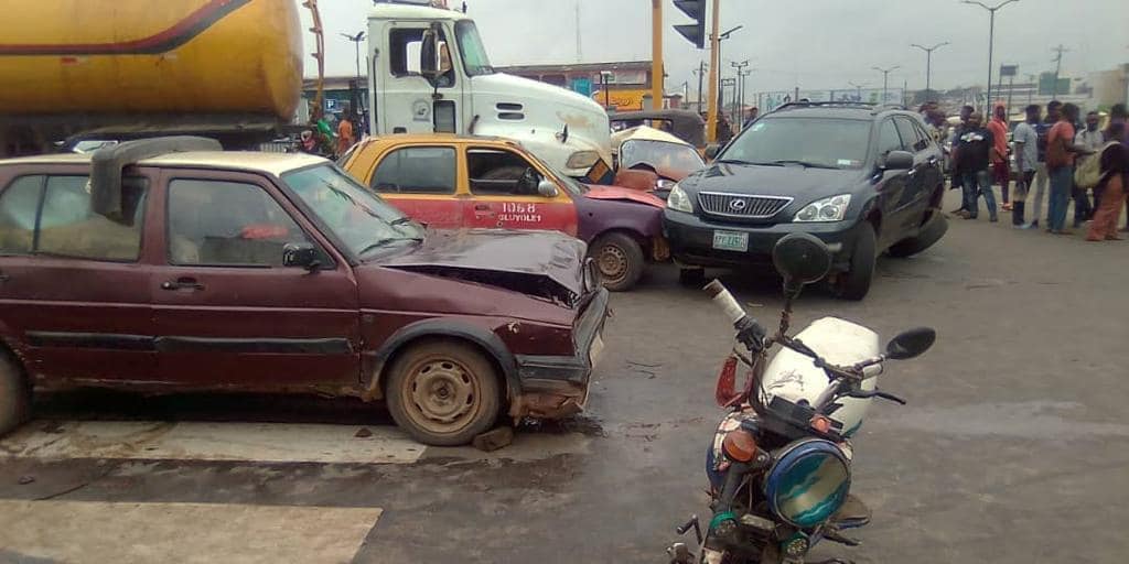 Tragedy was averted on Tuesday morning, July 13, when a petrol tanker crushed six cars in Ibadan, the Oyo State capital.