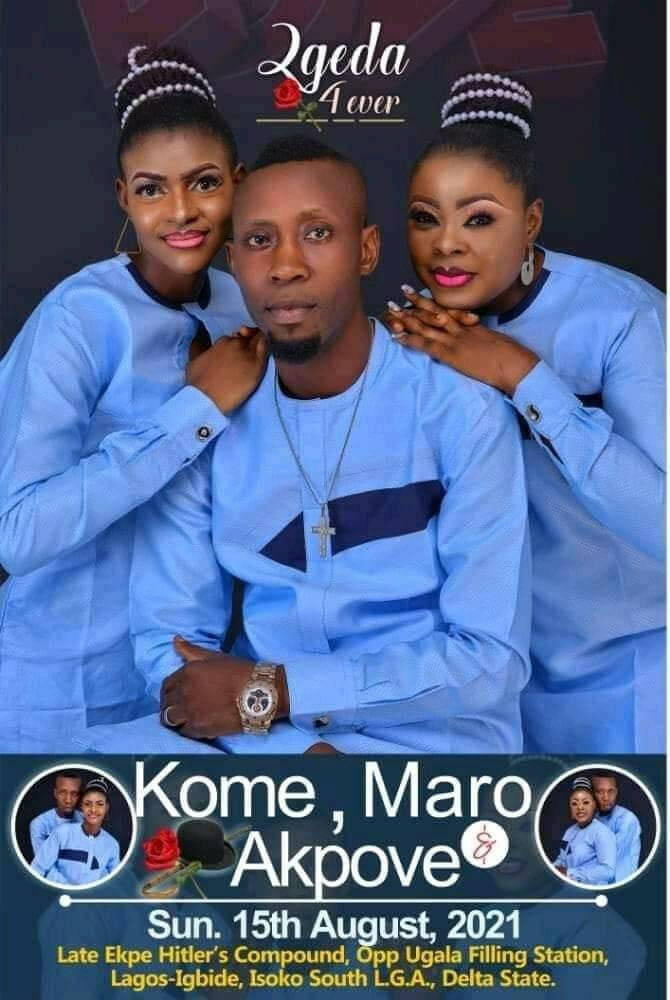 According to the wedding invite seen online, Akpove will be getting married to Kome and Maro in Lagos-Igbide in Isoko South Local Government Area of the state on Sunday, August 15.