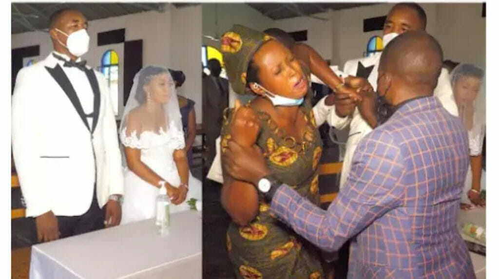 She found the pastor almost finishing the wedding. The woman ran straight to her husband and started fighting him asking why he decided to marry another wife and yet he knew very well that he belonged to her as a legally wedded husband and they had not divorced.
