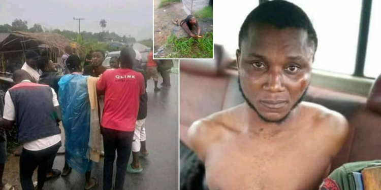 It was gathered that the suspect was caught attempting to behead his girlfriend along SETRACO Road, Amassoma/Ogobiri axis of the state on Tuesday morning, September 21.