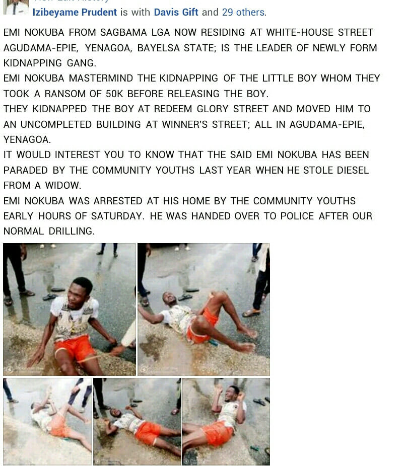 “EMI NOKUBA FROM SAGBAMA LGA NOW RESIDING AT WHITE-HOUSE STREET AGUDAMA-EPIE, YENAGOA, BAYELSA STATE; IS THE LEADER OF NEWLY FORM KIDNAPPING GANG.