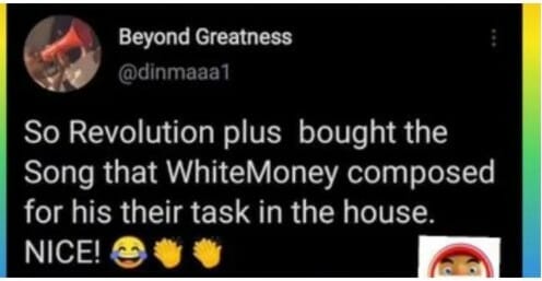 “So Revolution plus bought the Song that WhiteMoney composed for his their task in the house. NICE!”