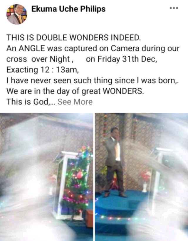 Ekuma Uche Phillips, a pastor in Nigeria, has taken to social media to share photos of “angel” captured on camera in his church