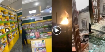 The clearly distraught man shared videos of his pharmacy being razed down on Tuesday night. According to Ifeanyi, the landlord had accused him and his wife of breaking into his apartment and poisoning the water tank, his teacup, spoons, gate, keys, pillow, and other house appliances.