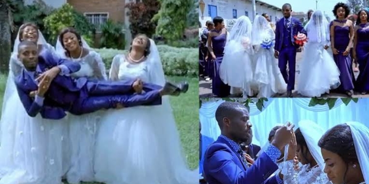 A man, Luwizo, 32, is currently trending on social media after he tied the knot with three sisters on the same day.