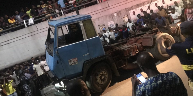 Many road users are feared dead after a trailer fell off the Ojuelegba bridge in the Surulere area of Lagos and landed on a car under the bridge.