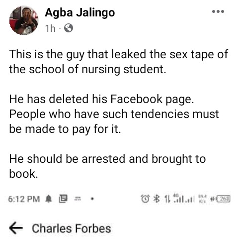 Management of the Cross River State School of Nursing and Midwifery, Itigidi, in Abi Local Government has reportedly expelled a female student, Gracious Paradise, who was allegedly captured in leaked sex tapes.