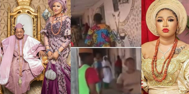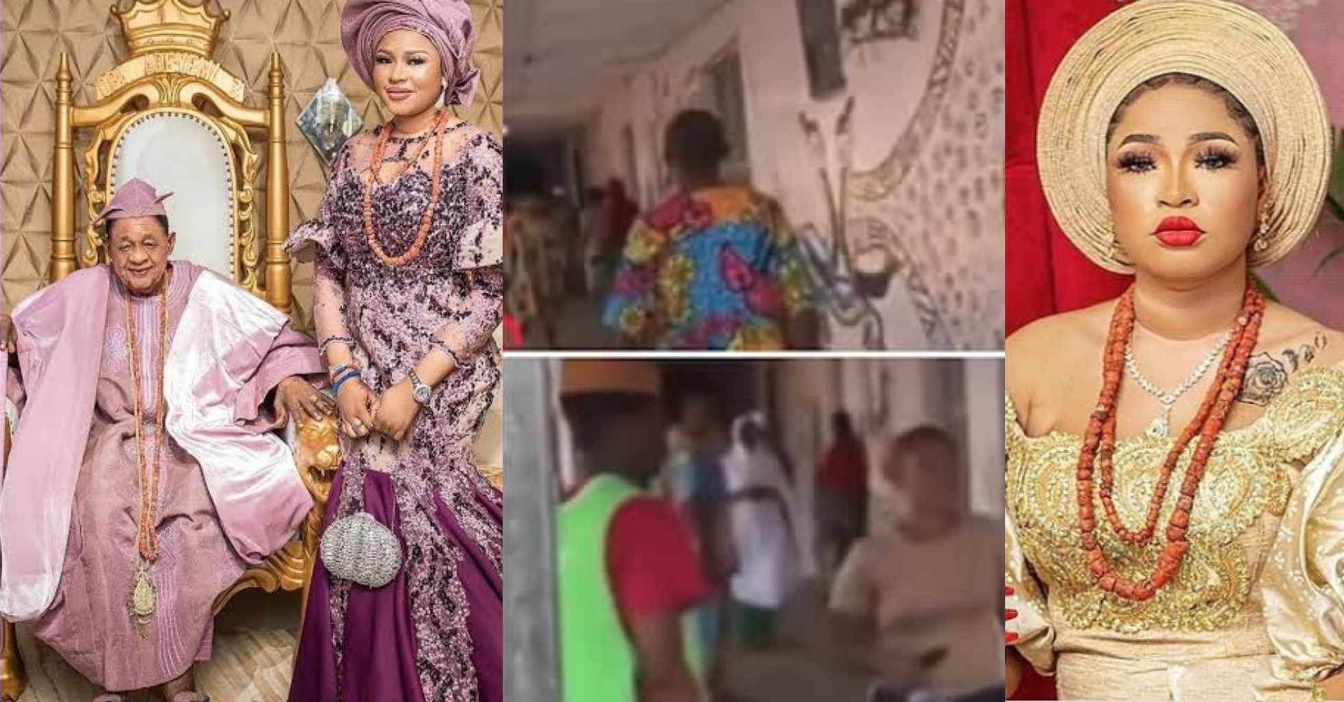 In a new video posted by Gistloversgram on Instagram, Queen Dami, who had initially left the palace and abandoned the king, finally returned upon news of the monarch’s death. A lady in the video, who is said to be one of the late king’s daughters, was seen raining heavy curses on the Olori.